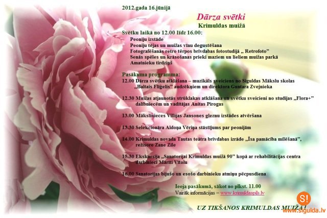 16.jūnijā no plkst.12.00 līdz 16.00 Krimuldas muižā notiks Dārza svētki.