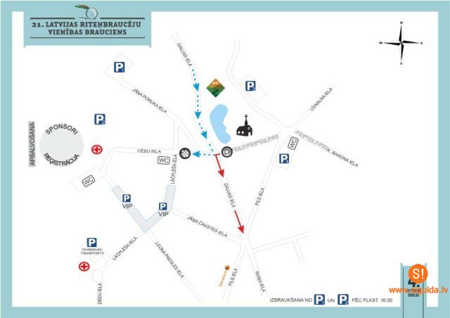 • P1 pļava pie Panorāmas rata, iebraukšana no J.Poruka ielas iebraukšana līdz plkst.10.30 (Svētku laukums, sacensību centrs) izbraukšana pēc plkst.16.00;
