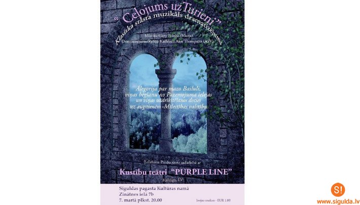 Piektdien, 7.martā plkst.20.00 ar muzikālo izrādi „Ceļojums uz Turieni” Siguldas pagasta Kultūras namā viesosies Kuldīgas Kustību teātris „Purple Line”. Šis ir projektu teātris, kas darbojas kopš 2005.gada, un tā dalībnieki ir amatierteātru režisori un aktieri no dažādām Latvijas pilsētām un novadiem (Rīga, Brocēni, Talsi, Sigulda, Cēsis, Ķekava, Jelgava u.c.).