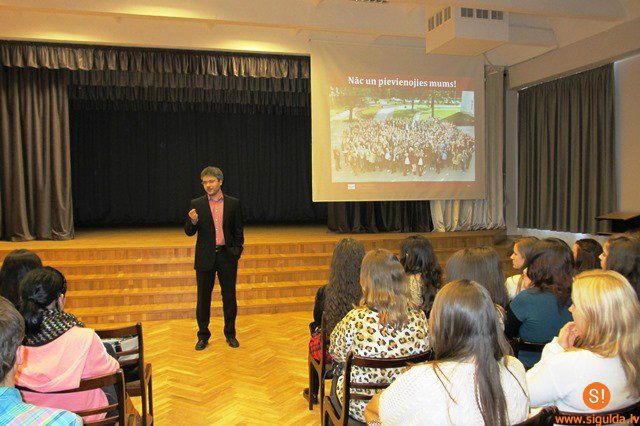 Māris Ginters rādīja prezentāciju par Stradiņa universitātes Eiropas studiju fakultāti, bet Edijs Bošs atraktīvi pastāstīja par savu pieredzi studiju izvēlē un par savu darbu. Edijs Bošs strādā TV3 kanālā par ziņu moderatoru un Stradiņa universitātē par pasniedzēju. Viņš ieguvis doktora grādu politikā un starptautiskajās zinībās Kembridžā. Protams, sarunas tikšanās noslēgumā no mācību programmām pievērsās starptautiskajiem notikumiem, un 12.klašu skolēni Edijam Bošam uzdeva dažādus jautājumus, kā arī izteica savas pārdomas par aktuālajiem starptautiskajiem notikumiem.