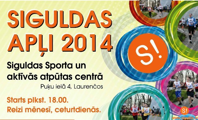 Ceturtdien, 14.augustā, Siguldas Sporta un aktīvās atpūtas centrā notiks treniņskrējienu „Siguldas apļi 2014” 5.kārta. Reģistrācija sacensībām no plkst.17.00, sacensību sākums plkst.18.00.