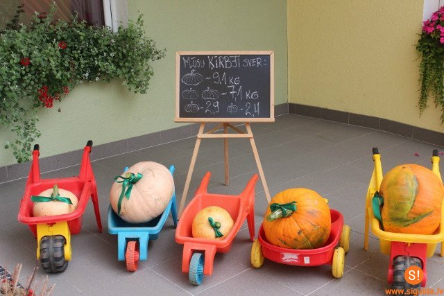 Ķirbji tika izskaitīti, nosvērti un pierakstīti rezultāti. Kopā tie svēra 28.6 kilogramus. Noskaidrojām kādus ēdienus var pagatavot no ķirbjiem un kuri mums garšo vislabāk. Ķirbjus arī izpušķojām un gājām jautrajā ķirbju stafetē. Nobeigumā ķirbji ar ķerrām tika nogādāti bērnudārza pagalmā, lai iepriecinātu bērnus, vecākus un „Ieviņas” viesus. Pēc parādes ķirbji tiks atdoti bērnudārza pavārītēm, lai pagatavotu gardos ķirbju ēdienus bērniem.