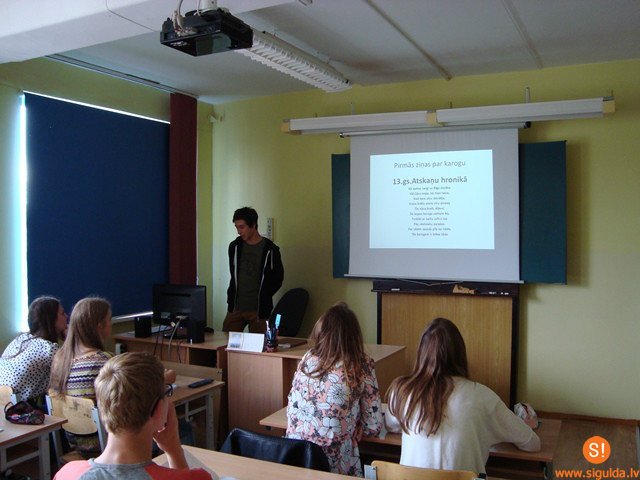11.septembrī vēstures stunda Siguldas Valsts ģimnāzijas 9.m klasē sākās ar Hugo Kisila sagatavoto prezentāciju “Latvijas karoga stāsts”.