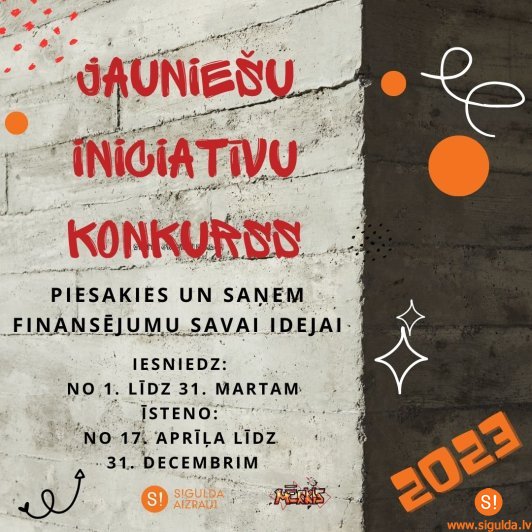 Siguldas novada Jaunrades centra jauniešu iniciatīvu centrs “Mērķis” kopā ar Siguldas novada pašvaldību izsludina pieteikšanos 2023. gada Jauniešu iniciatīvu projektu konkursam. Konkursa mērķis ir finansiāli atbalstīt jauniešu iniciatīvas un to...