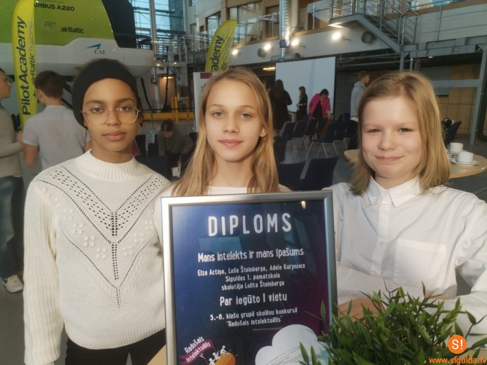 24. novembrī Siguldas 1. pamatskolas 5. klases komanda – Elza Actiņa, Leila Šteinberga, Adele Kurpniece, skolotāja Lolita Šteinberga – devās uz konkursa “Radošais intelektuālis” laureātu apbalvošanas pasākumu. Elzas, Adeles, Leilas un skolotājas...