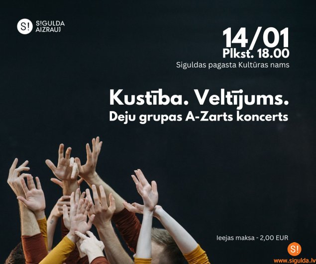 14. janvārī plkst. 18.00 Siguldas pagasta Kultūras namā norisināsies deju grupas “A-Zarts” koncerts “Kustība. Veltījums”. Janvāris Siguldas pagasta Kultūras namā aizrit Felicitas Ertneres vārdā, par godu tam notiks arī laikmetīgās dejas koncerts.