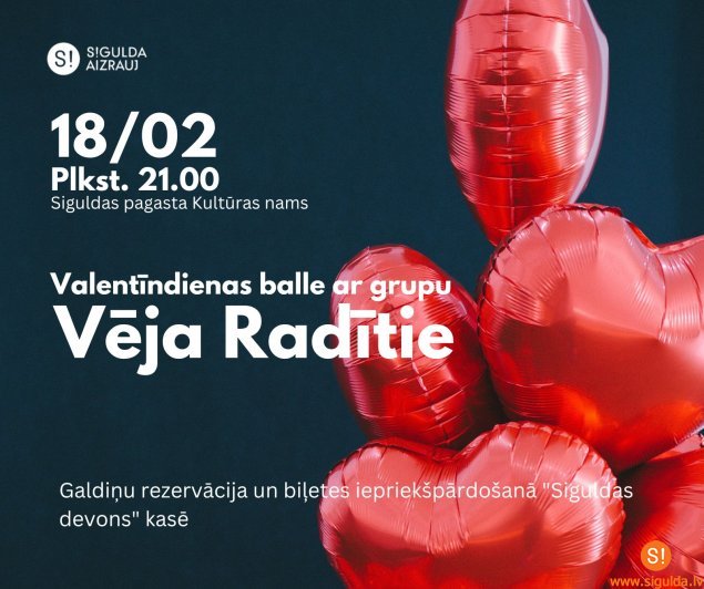 Pēc ilgāka pārtraukuma Siguldas pagasta Kultūras namā atgriežas Valentīndienas balle. Tā norisināsies 18. februārī plkst. 21.00, par muzikālo noformējumu parūpēsies grupa “Vēja radītie”.