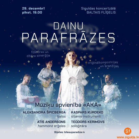 Šovakar, 29. decembrī, plkst. 19.00 koncertzālē “Baltais flīģelis” būs iespēja baudīt neparastu Vecgada koncertu “Dainu parafrāzes”, kurā klausītājus pārsteigs folkloras un džeza sinerģija, balss un instrumentu saspēle, oriģinālkompozīcijas un aranžijas...