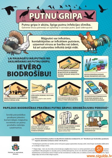 Latvijā konstatētās putnu gripas dēļ turpmāk mājputni jātur slēgtās telpās, novēršot kontaktu ar savvaļas putniem un dzīvniekiem, kā arī jāievēro citi papildu biodrošības pasākumi novietnēs, kurās tur mājputnus. Mājputnu turēšanas ierobežojumi, kā arī...
