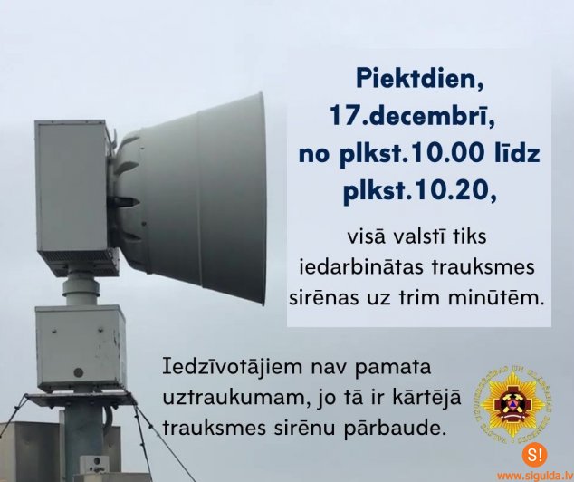 2021-12-14 Piektdien, 17. decembrī, visā Latvijā pārbaudīs trauksmes sirēnas