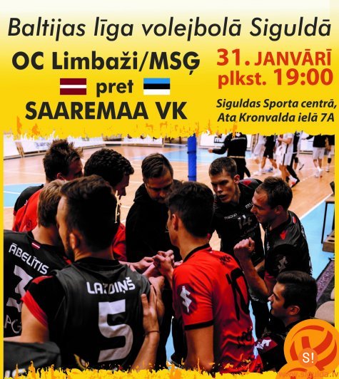 Piektdien, 31. janvārī, plkst. 19.00 Siguldas Sporta centrā notiks Baltijas līmeņa volejbola spēle, kurā spēkiem mērosies komanda “OC Limbaži/MSĢ” pret “SAAREMAA VK”. Limbažu komandas sastāvā ir arī Siguldas jaunais volejbola talants Gustavs...