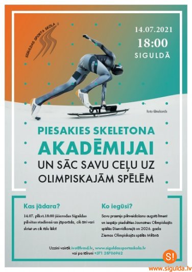Siguldas novada pašvaldības Sporta pārvalde aicina biedrības un nodibinājumus vēl līdz 15. oktobrim iesniegt pieteikumu finansējumam sporta pasākumu organizēšanai 2022. gadā. Pieteikums iesniedzams saskaņā ar noteikumu Nr. 4/2017 “Par finansējuma...