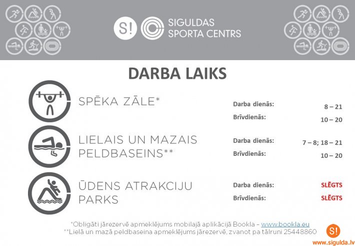2021-10-14 Ar 14. oktobri izmaiņas Siguldas Sporta centrs darba laikā